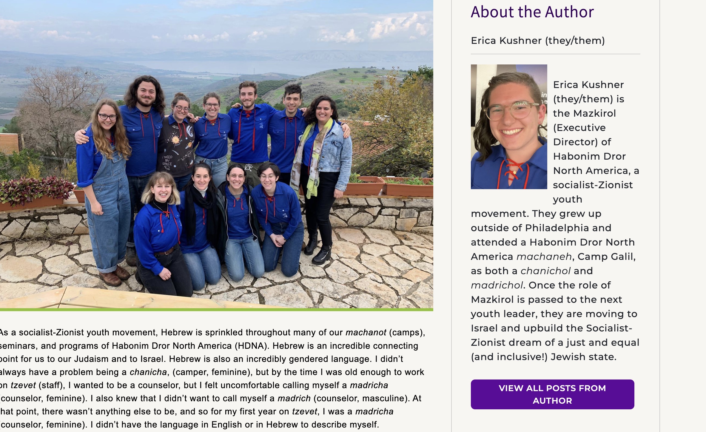 I am excited to begin my time as Mazkirol of Habonim Dror North America. Please feel free to reach out to me with questions, concerns, ideas you have, partnerships you envision, or if you just want to talk about the movement. You can reach me at mazkir@habonimdror.org. Aleh V’hagshem.