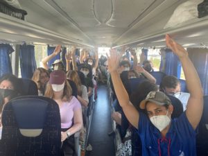 us. The discussions were a good mixture of meaningful (exploring the concept of shivyon erech ha’adam) and silly (trying to find our “soulmates” based on this-or-that questions). Even though our buses are made up of two different kvutzot, everyone has gotten a healthy dose of bonding, especially through bus cheers and the now infamous seatbelt song! Although we have our classic Habo traditions, we still have fun seeing the differences between machanot.